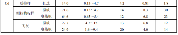 濾膜質控樣品由美國職業健康研究所提供(A-3.1)。顆粒物標樣為美國 NIST(1648a)。 樣品消解處理采用硝酸-鹽酸混合溶液(5.6),定容體積為 50.0 ml。不同類型樣品測定值濃 度(或含量)單位分別為:質控樣(μg )、顆粒物標樣(μg/g)、飛灰樣品(μg/g)和 TSP 樣品(μg/cm 2 )。其中顆粒物標樣中 Al 、Ca、K 元素含量單位為重量百分比(% )。