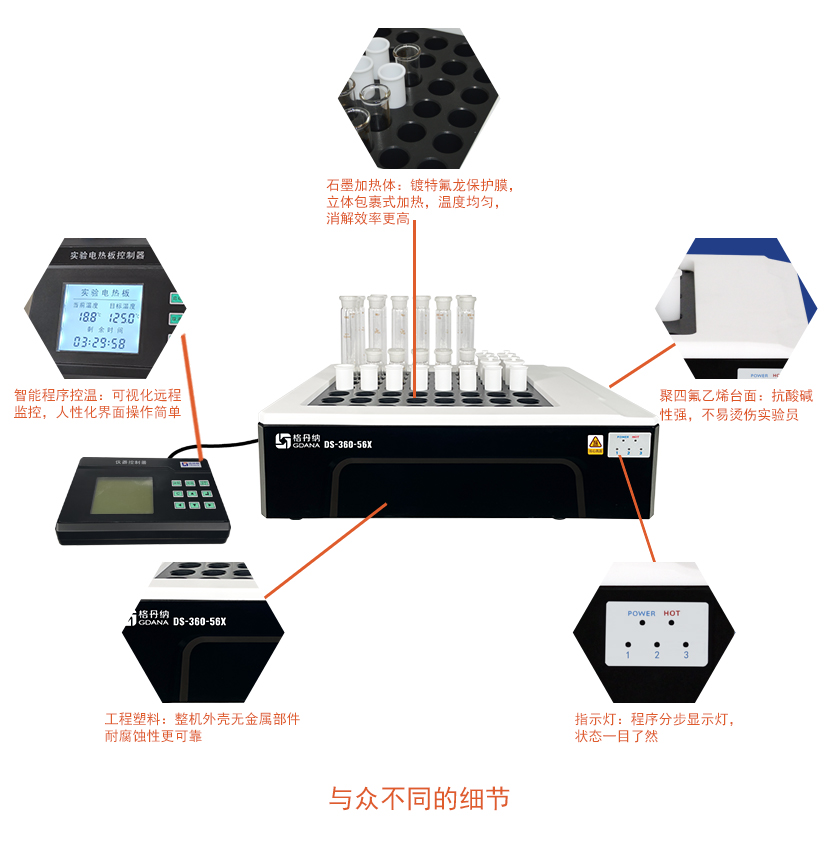 3.多孔設(shè)計(jì),批量處理樣品,快速消解,節(jié)省時(shí)間。標(biāo)配有:36、39、56、60等不同型號,且支持定制。
