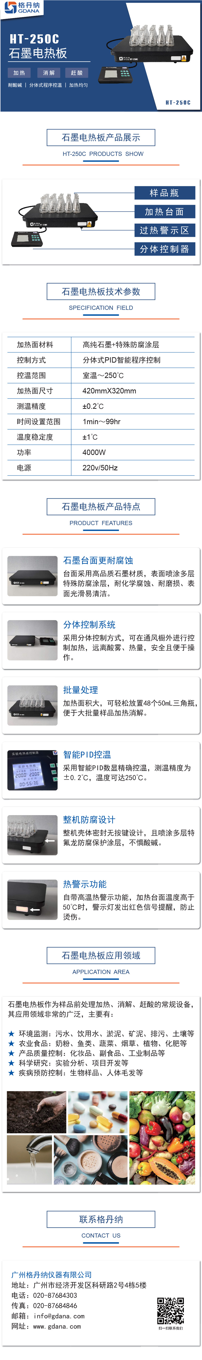 HT-250C石墨電熱板是用于化學試驗室樣品前處理中進行加熱、消煮、趕酸用的常規實驗設備。