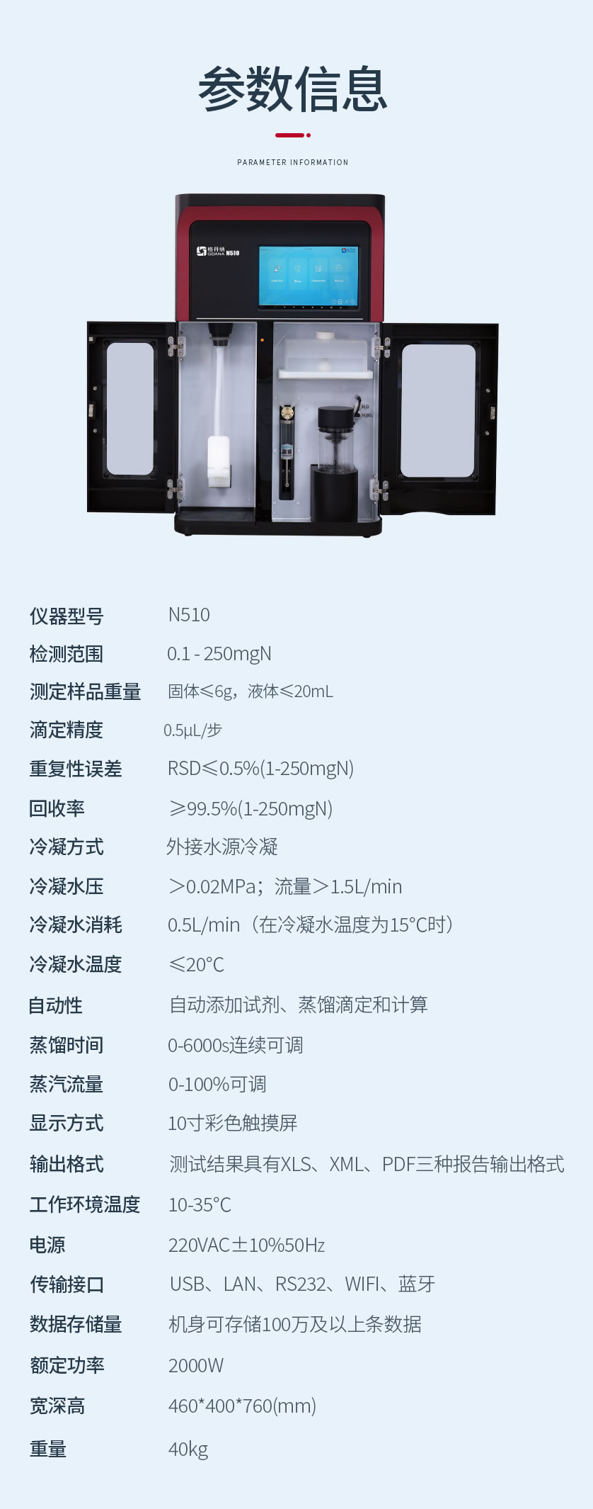 儀器采用邊蒸餾邊滴定及變速度變體積滴定技術,省時高效,測試準確性更高。
