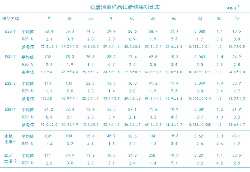 本文采用全自動石墨消解土壤,ICP/MS同時測定土壤中V、Cr、Co、Ni、Cu、Zn、As、Cd、Sb、Pb等10種金屬元素的方法,得到了滿意的結(jié)果,使得土壤金屬元素的分析批量化、智能化得以實現(xiàn)。