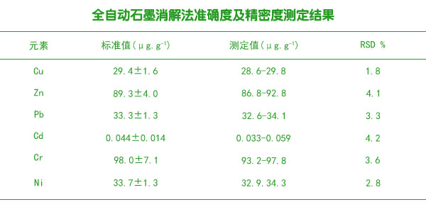 采用全自動消解方法對農地土壤、林地土壤進行消解分析,每個樣品平行測定3份,測定數據見下面表格。從表可以看出實驗結果滿意。