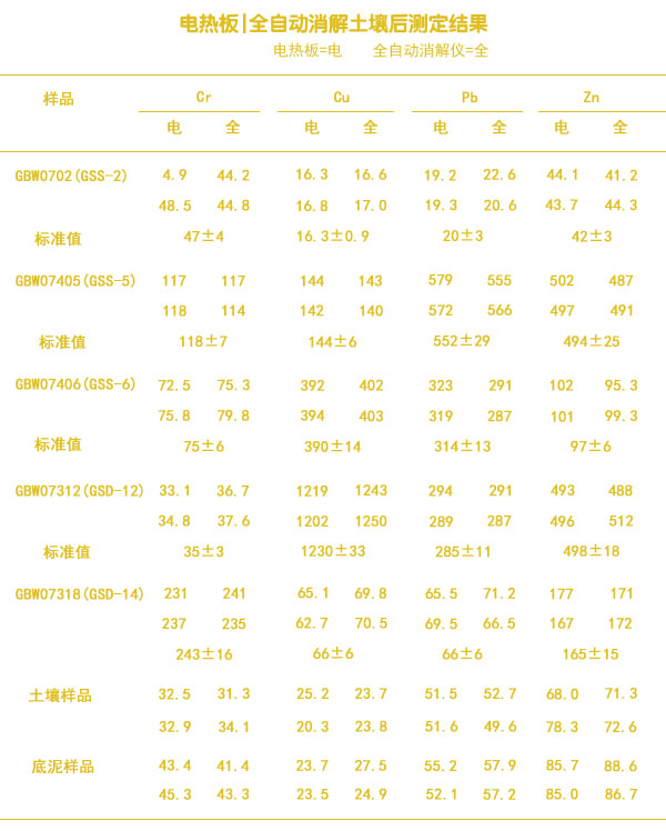 2018年7月土地標準又頒發了,《農用地標準》、《建設用地標準》證明了,我國對土地利用越來越重視,當前比較嚴重的是土壤重金屬,重金屬富集起來對環境、人類都造成巨大的影響。文中使用陶瓷加熱板與全自動消解儀作用前處理的消解設備研究幾種酸消解體系對土壤和底泥(水沉積物)樣品消解的效果,對土壤和底泥金屬元素分析為實驗室選用不同的消解設備作參考。