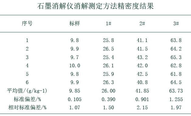 用石墨消解儀代替?zhèn)鹘y(tǒng)電爐消解法測定土壤有機質,測定結果的準確度和精密度均滿足要求。與電爐方法相比不僅解決了溫度難調控、難清洗、操作繁瑣等缺點,而且操作簡單、消解過程自動化、消解時間更短、安全等,并適合大批量土壤樣品有機質的測定。