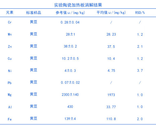 實(shí)驗(yàn)電熱板消解黃豆測(cè)定重金屬基本滿足要求,數(shù)據(jù)比較穩(wěn)定可靠,電熱板消解可以大批量處理分析樣品,節(jié)省了時(shí)間,實(shí)驗(yàn)室比較常規(guī)的儀器設(shè)備就可以滿足實(shí)驗(yàn)操作了。
