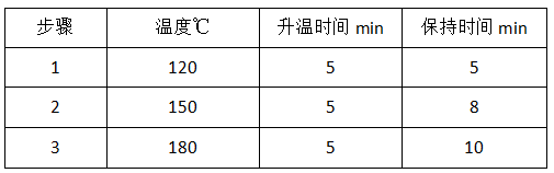 將經(jīng)過烘干并研磨成粉末狀的玉米樣品0.35克準確稱取至微波消解罐中,加入8毫升 硝酸和2毫升 高氯酸溶液,封蓋后放入微波消解儀內,同時進行兩份空白對照。按以下程序進行密閉消解。消解完成后,將消解罐冷卻至室溫,取出后將消化液轉移到25毫升容量瓶中,用超純水稀釋至刻度,備用。